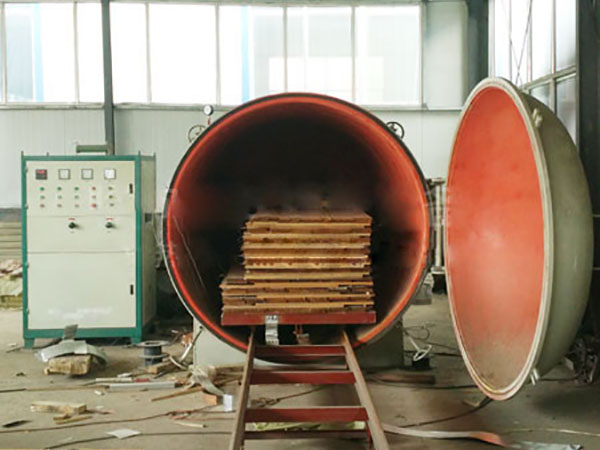 采用高頻電場作為加熱源,電場均勻輻射在木材上,并穿透木材直接對水分進行加熱,而真空的吸水作用加速水分排出。
